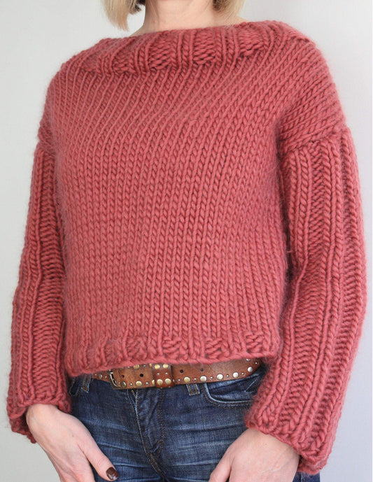 Easy Knitting Pattern - Railway Sleeve Cropped Chunky Sweater